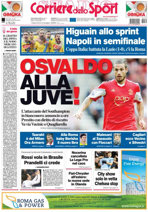 CORRIERE JUVENTUS – La Juventus è a un passo da Osvaldo, attaccante italo-argentino del Southampton.