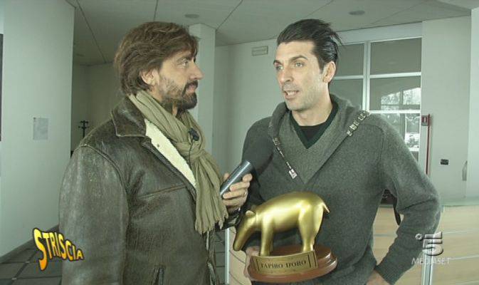 A consegnarglielo è, come sempre, Valerio Staffelli questa sera a Striscia la notizia su Canale 5. Sul cartellino rosso rimediato sabato sera a Roma contro la Lazio, Buffon risponde che ‘l‘espulsione era qualcosa che nessuno si aspettava. Ma per come si è svolta la situazione di gioco, era qualcosa di inevitabile. Sicuramente queste regole sono molto punitive’. Staffelli, incalza Buffon anche sulla presunta relazione con Ilaria D’Amico, riportata da molti giornali e siti nei giorni scorsi: ‘È vero che vuole lasciare la ‘vecchia signora?’, la domanda riferendosi alla moglie Alena Seredova. Il portiere risponde: ‘Assolutamente no. Sono solo dei chiacchiericci e come ho sempre detto credo che le situazioni private vadano risolte e affrontate in famiglia con la massima serenità e la massima trasparenza’.