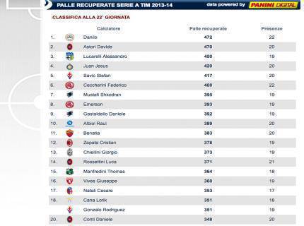 SERIE A PALLONI RECUPERATI UDINESE DANILO- Stando a quanto riporta la Lega Calcio, il difensore dell’Udinese Danilo ha approfittato della partita rinviata fra Roma e Parma per superare Alessandro Lucarelli in una classifica molto particolare. Parliamo di quella dei palloni recuperati. Il difensore bianconero è a quota 472 in 22 partite. Al secondo posto c’è Astori (470) mentre Lucarelli, per ora, è solo terzo (450). Delle big il primo è Raul Albiol, decimo con 389.