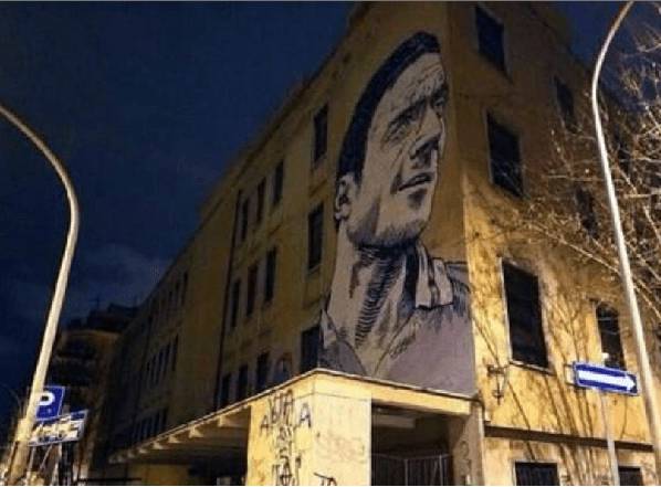 FOTO MURALES TOTTI – Il giorno dopo il derby tra Roma e Lazio, nella capitale è spuntato un mega murales del calciatore simbolo della Roma, il capitano Francesco Totti. L’omaggio ad uno dei giocatori più forti della storia del calcio italiano è spuntato sulla facciata della scuola Pascoli che si trova nel quartiere San Giovanni a Roma. Una vera e propria gigantografia del capitano giallorosso che sovrasta la facciata della scuola e che è una vera opera d’arte. Perfetto, infatti, nei lineamenti e nell’espressione. Ecco le altre foto.
