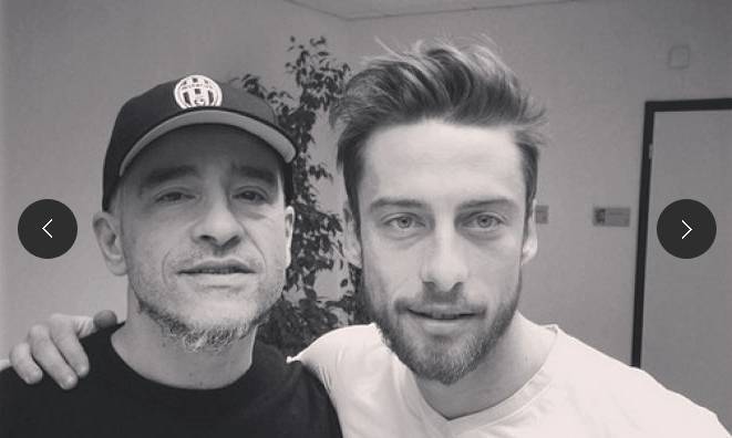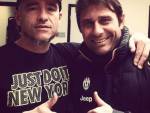 JUVENTUS VINOVO RAMAZZOTTI – Dopo la sfuriata di ieri di Antonio Conte che ha messo sott’accusa alcuni big della Juventus, primi Pogba e Vidal per il pareggio ottenuto a Verona quando la partita sembrava in pugno, oggi a Vinovo è tornato il sereno. Merito di Eros Ramazzotti, grande tifoso bianconero che, pur non deliziando la Vecchia Signora con le sue canzoni, è riuscito a riportare un po’ di serenità con la sua presenza. Nelle foto che vi mostriamo, infatti, il cantautore romano posa insieme a due simboli della Juventus, Antonio Conte e Claudio Marchisio.