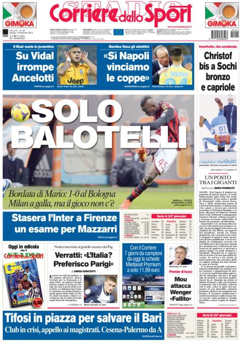 CORRIERE BALOTELLI – Il Milan delude contro il Bologna, decide a pochi minuti dalla fine Balotelli con un gol pazzesco.