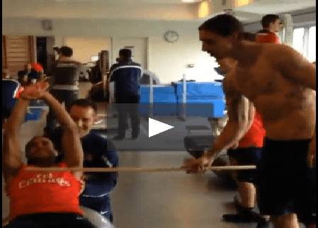 VIDEO IBRAHIMOVIC – Zlatan Ibrahimovic si trasforma in un sergente di ferro con i compagni durante gli allenamenti del Psg. Nel video che vi proponiamo oggi, infatti, si vede l’attaccante svedese mentre stimola i compagni ad impegnarsi nella seduta in palestra con un bastone. Sotto lo sguardo divertito degli altri giocatori, Zlatan Ibrahimovic prende di mira Lucas, steso su una panca mentre fa gli allenamenti. Il brasiliano, infatti, per i gusti di Ibrahimovic se la prende troppo comoda. E così Ibra gli mostra le maniere dure.
