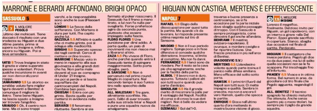 Foto – Sassuolo-Napoli, voti e pagelle della Gazzetta dello Sport: Insigne fenomeno, delusione Berardi
