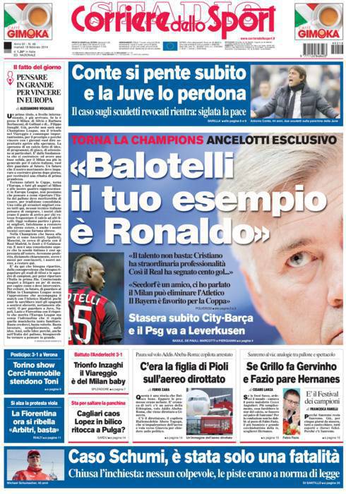 Corriere dello Sport – Ancelotti ‘Balotelli il tuo esempio è Ronaldo’