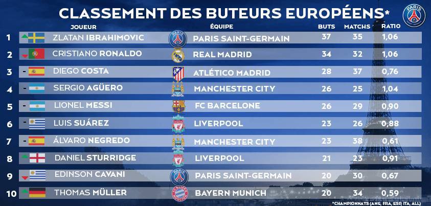 BOMBER EUROPEI IBRAHIMOVIC RONALDO- Questa che vi abbiamo postato è la foto della classifica aggiornata dei bomber europei della stagione 2013- 2014. Al primo posto c’è Zlatan Ibrahimovic, che con i suoi 37 gol guida la classifica con tre reti di vantaggio su Cristiano Ronaldo e 9 su Diego Costa dell’Atletico Madrid. Messi è solo quinto (26 gol). Da notare, purtroppo, che nei primi dieci mancano sia italiani sia calciatori stranieri ma che giocano in Serie A.