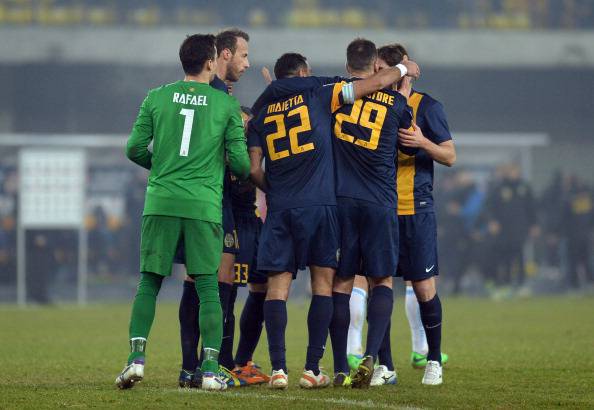 Verona (4-3-3): Rafael 7; Cacciatore 6, Moras 6.5, Marques 6, Albertazzi 5.5; Romulo 6, Donadel 5.5, Marquinho 5; Iturbe 6 (76′ Hallfredsson s.v.), Rabusic 6 (63′ J. Gomez 6), Jankovic 5.5 (63′ Martinho). A disp.: Pillud, Donati, Cacia, Nicolas, Cirigliano, Maietta, Sala, Myhailov, Agostini. All.: Mandorlini.