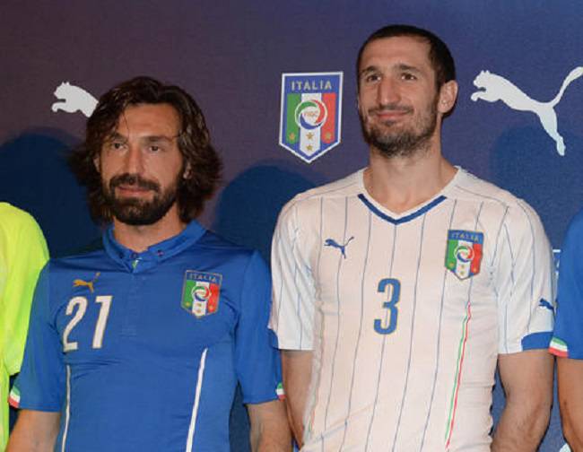 FOTO MONDIALI 2014 MAGLIA ITALIA – Nella settimana della grande amichevole tra Spagna e Italia, è stata presentata la maglia della Nazionale Italiana con cui la squadra azzurra, guidata da Cesare Prandelli, parteciperà ai prossimi Mondiali che si disputeranno il prossimo giugno in Brasile. A fare da modelli per la presentazione della nuova maglia sono stati gli juventini Andrea Pirlo e Giorgio Chiellini. Quella azzurra presenta uno stile classico con un piccolo colletto e lo scudetto sul petto. Quella bianca, invece, non ha il colletto e presente delle strisce azzurre. In prossimità dello scudetto, poi, ci sono una striscia verde e una rossa che richiamano il tricolore italiano.