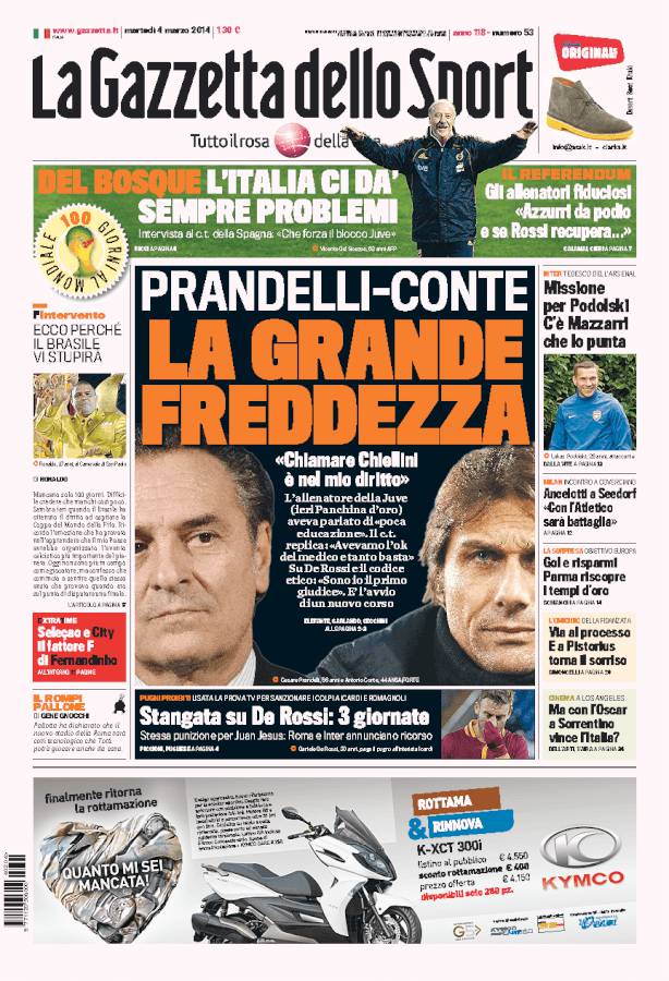 Gazzetta dello Sport – Prandelli-Conte, la grande freddezza