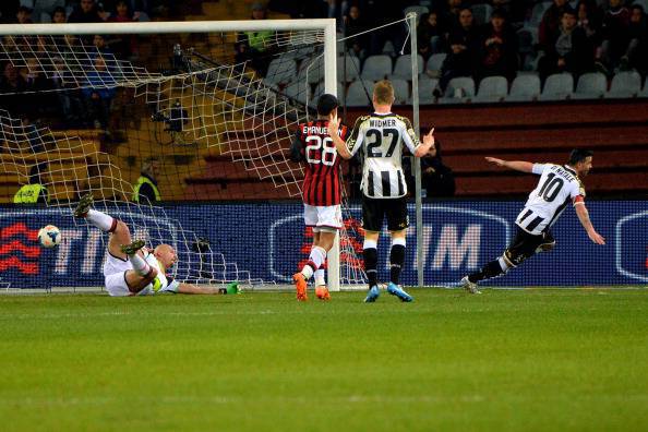VIDEO UDINESE MILAN – L’Udinese batte il Milan per 1-0 con un gran gol di Di Natale in cui è colpevole la difesa rossonera. In vista della delicata sfida di Champions contro l’Atletico Madrid, in programma martedì 11 marzo, Clarence Seedorf lascia in panchina Balotelli, Taarabt e Kakà e Francesco Guidolini ne approfitta. Il primo tempo è stato abbastanza vivace con diverse occasioni soprattutto per il Milan, pericoloso con Pazzini e Zapata. Nella ripresa, invece, i cambi confondono i rossoneri con Di Natale che ne approfitta e punisce i rossoneri. Un goal, però, sul quale ha moltissima colpa la difesa rossonera.