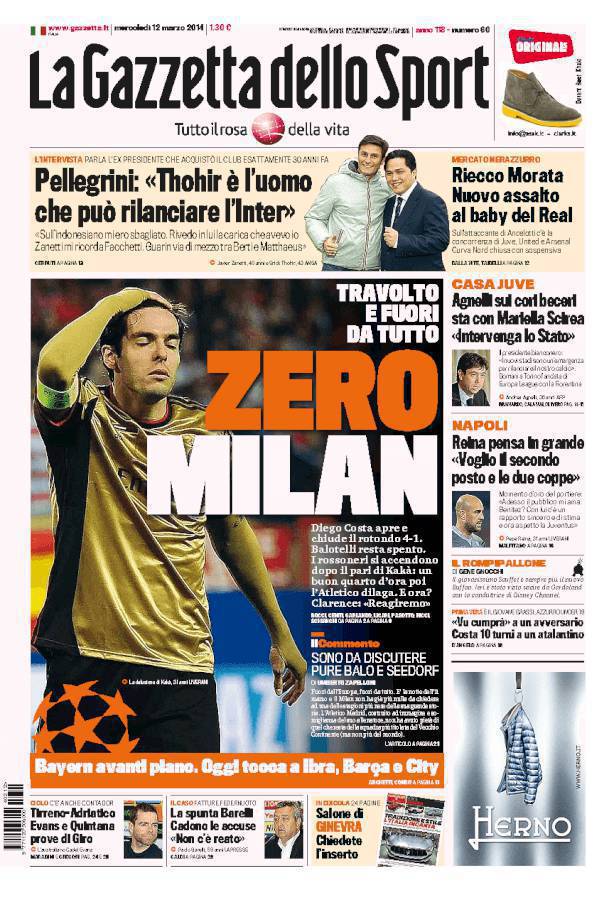 GAZZETTA MILAN – Il Milan esce fuori dalla Champions League. Ieri sera è stato travolto quattro a uno dall’Atletico Madrid.
