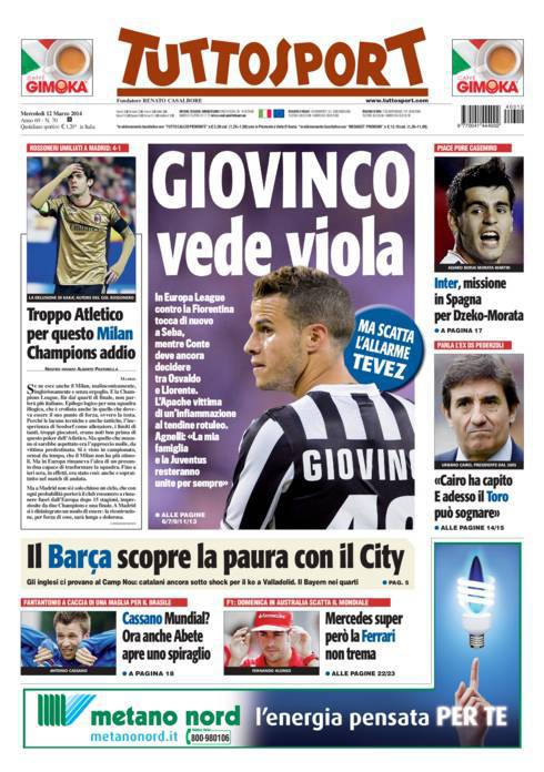 TUTTOSPORT GIOVINCO – Su Tuttosport si parla di Giovinco che potrebbe giocare titolare contro la Fiorentina in Europa League.