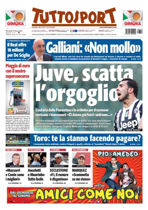 Tuttosport – Juve, scatta l’orgoglio 19/03/2014 di Ruggieri TUTTOSPORT JUVENTUS – I bianconeri preparano il ritorno degli ottavi di finale di Europa League che si giocherà in casa della Fiorentina. la redazione di Calciomercatonews.com