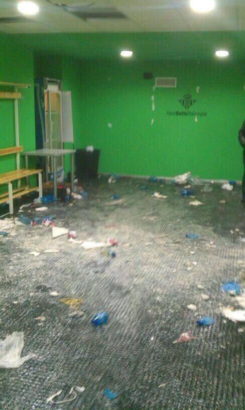 EUROPA LEAGUE BETIS SIVIGLIA – Incredibile doppio derby europeo tra Betis e Siviglia, altrettanto clamoroso l’epilogo dal dischetto con i biancorossi che rimontano il doppio svantaggio dell’andata e si aggiudicano i quarti di Europa League dal dischetto. Il Betis se la passa male, questa non ci voleva, ultimo nella Liga e… con lo spogliatoio sfasciato. Gli ospiti dopo la partita avrebbero infatti massacrato gli spogliatoi, come dimostra inequivocabilmente la foto che vi mostriamo.