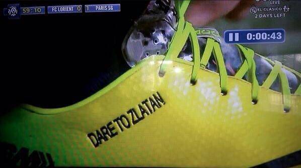 FOTO – IBRAHIMOVIC NUOVI SCARPINI – Ieri sera nell’anticipo della trentesima giornata dalla Ligue 1 il Paris – Saint Germain ha battuto fuori casa il Lorient per 1-0 grazie alla rete di Thiago Motta al 41′ minuto del primo tempo. Sesta vittoria consecutiva in Ligue 1 per i parigini che si portano momentaneamente a +11 sul Monaco. Grande protagonista della partita ancora una volta Zlatan Ibrahimovic anche nel look. Infatti l’attaccante svedese, sempre più provocatorio, ha indossato degli scarpini che ancora una volta ricalcano la sua personalità. Zlatan non teme nessuno e lo dimostra ogni volta di più in campo trascinando il Paris Saint – Germain verso quarto titolo nazionale, secondo consecutivo.