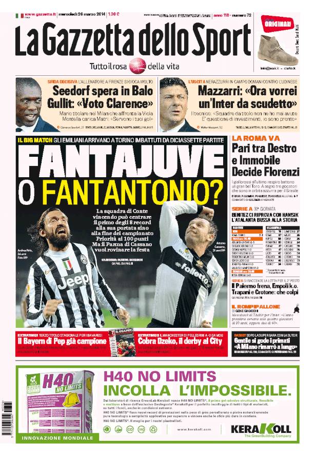 Gazzetta dello Sport – FantaJuve o FantAntonio? 26/03/2014 di Ruggieri GAZZETTA JUVENTUS – Questa sera il Parma farà visita alla Juventus, una partita davvero bella e intrigante tra due formazioni in forma. la redazione di Calciomercatonews.com