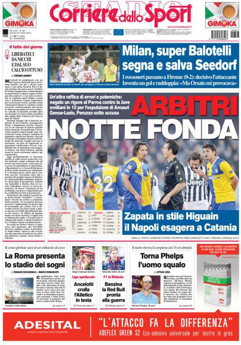 CORRIERE ARBITRI – Gli arbitri italiani ancora sotto accusa, negato un rigore al Parma contro la Juventus e Amauri espulso ingiustamente.