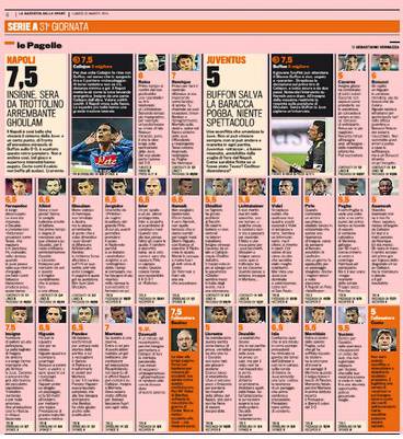 FOTO NAPOLI JUVENTUS VOTI PAGELLE CALLEJON OSVALDO – Il Napoli vince due a zero contro la Juventus grazie ai gol di Callejon e Mertens che hanno annichilito i bianconeri. Si tratta di una vittoria importante per gli uomini di Benitez che hanno più gamba. La Juventus è apparsa stanca soprattutto per quanto riguarda molti interpreti che non sembrano avere benzina. Fenomenale Callejon, esterno spagnolo in grado di segnare il primo gol e di far ammattire la difesa della Juventus. Ottima prova anche di Insigne. Nella Juventus si salva solo Buffon, male Pirlo e Vidal, male Osvaldo. Voti e pagelle della Gazzetta dello Sport.