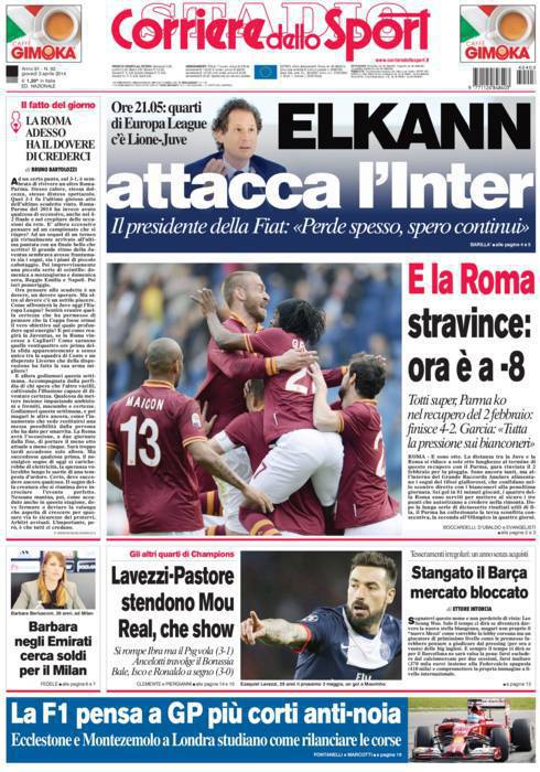 CORRIERE ELKANN – Il proprietario della Juventus John Elkann sarcastico sull’Inter, spera che i nerazzurri continuino a perdere.