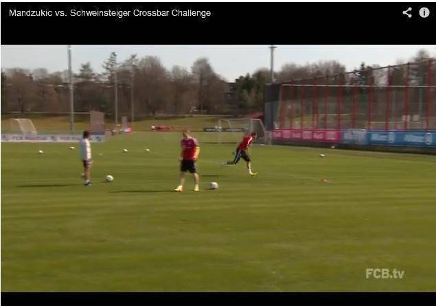 BAYERN MONACO SCHWEINSTEIGER MANDZUKIC VIDEO- Bastian Schweinsteiger contro Mario Mandzukic. I giocatori del Bayern Monaco si sono divertiti a sfidarsi a chi colpiva più traverse: ecco il video