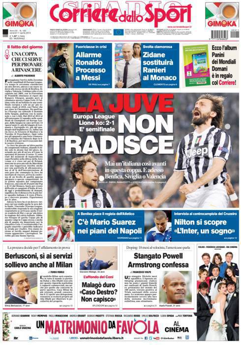 CORRIERE JUVENTUS – Un gol di Pirlo e un gol di Marchisio con deviazione permettono alla Juventus di volare alle semifinali di Europa League.