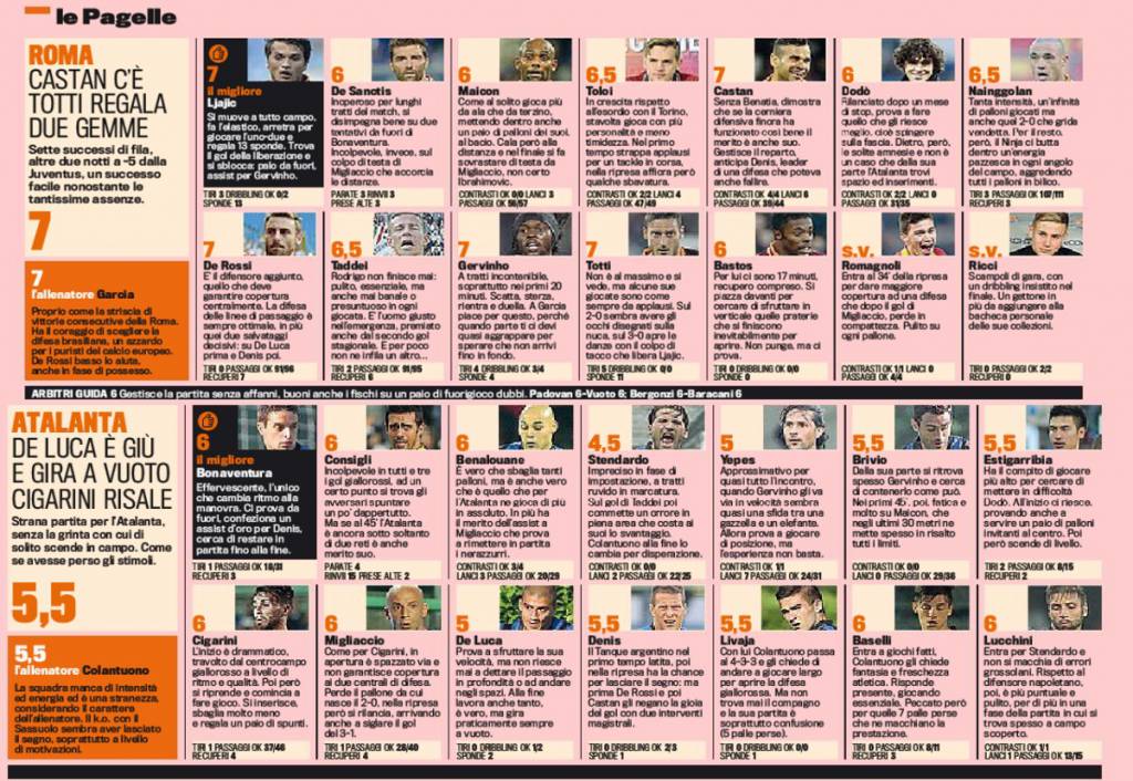 FANTACALCIO ROMA ATALANTA – E’ una Roma spettacolo quella che allo stadio Olimpico ha battuto per 3-1 l’Atalanta con reti di Taddei, Ljajic e Gervinho, Senza Pjanic, Destro e Florenzi, i giallorossi trascinati da un super Ljajic, il migliore dei suoi, conquistano la settima vittoria consecutiva. Il serbo gioca a tutto campo, arresta per aiutare in fase difensiva, inventa e trova anche il gol grazie ad un generosissimo De Rossi. Benissimo anche Castan in difesa, capace di prendere per mano Toloi e non far rimpiangere l’assenza di Benatia, De Rossi che è un muro insormontabile, Gervinho con le sue solite incursioni e Totti che è sempre da applausi. Nell’Atalanta, invece, il migliore è stato Bonaventura, l’unico capace di cambiare ritmo alle manovre dei suoi.