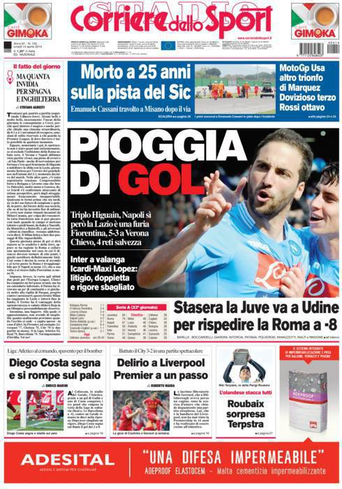 CORRIERE GOL – Sul Corriere dello Sport si parla dei tanti gol dell’ultima giornata di campionato, tripletta per Higuain.