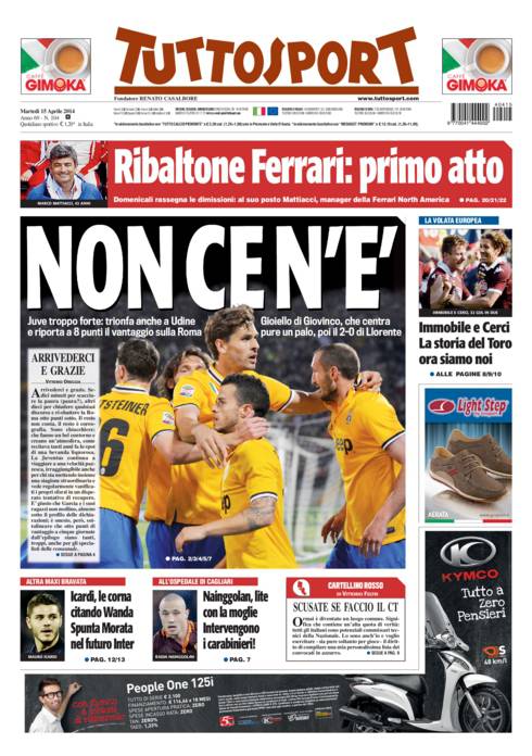 TUTTOSPORT JUVENTUS – Juventus inarrestabile e corsara anche a Udine, due a zero per i bianconeri di Conte con reti di Giovinco e Llorente.