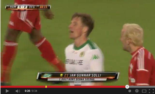 VIDEO CARTELLINO GIALLO ASSURDO PALLA STOPPA – Questo video si può collocare perfettamente al limite tra il calcio ed un altro sport non meglio definibile. Durante la gara di serie B svedese tra Hammarby e Degefors, finita per la cronaca 5-0, il numero 21 della squadra padrona di casa Jan Gunnar Solli, ha la geniale idea di stoppare il pallone nascondendolo sotto la maglia. Un gesto che non è ovviamente passato inosservato al direttore di gara che non ha potuto far altro: ammonizione immediata per Solli, immediatamente pentito del gesto fatto. Vediamo il video dell’ammonizione più idiota di smpre: