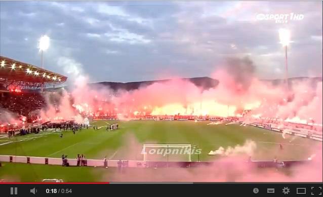 VIDEO SPETTACOLO GRECIA – Coreografia da brivido prima del match tra Paok e Olympiakos, la tifoseria di casa ha trasformato il loro stadio, il Toumbas, in un autentico inferno con tanto di luci fiammeggianti. Atmosfera infuocata per i biancorossi per questa gara di coppa. La Grecia, si sa, è patria di tifoserie roventi, basta vedere questo video per sentir salire la temperatura.
