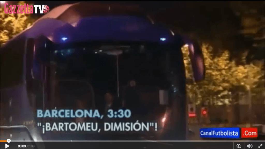 VIDEO BARCELLONA TIFOSI INSULTI- Una contestazione in piena regola quella che hanno trovato i giocatori del Barcellona tornando dalla finale persa di Coppa del Re contro il Real Madrid. I tifosi si sono infatti radunati in attesa del pullman dei calciatori, per prenderlo pesantemente di mira con urla ed insulti. Tra i principali bersagli il presidente Bartomeu, più volte invitato alle dimissioni, e l’allenatore della squadra, Martino, tra i maggiori colpevoli dell’annata negativa ( il Barcellona rischia pesantemente di chiudere la stagione a 0 titoli). Impressionanti, e forse eccessivi, gli insulti a Lionel Messi, più volte apostrofato pesantemente dai supporter blaugrana. Visibilmente dispiaciuto l’ex capitano Puyol, quasi sconvolto dalla situazione.