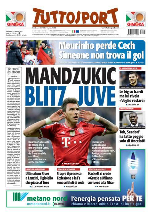 TUTTOSPORT MANDZUKIC – Su Tuttosport si parla di Mandzukic che piace molto alla Juventus. Pronto l’assalto bianconero.