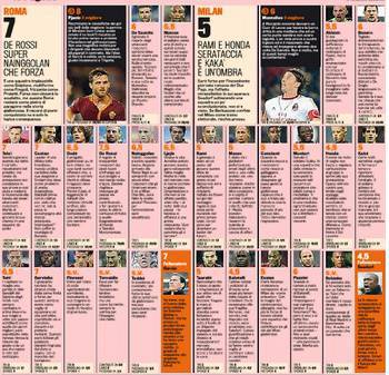 FOTO ROMA MILAN VOTI PAGELLE PJANIC MARADONA BALOTELLI – La Roma vince due a zero contro il Milan grazie a una magia di Miralem Pjanic e al gol di Gervinho su errore di Abbiati. Grandissima prova del centrocampista bosniaco della Roma autore di una prova maiuscola. Nel Milan invece prova disastrosa di Balotelli ma il giocatore italiano non è l’unico che ha fatto male nel match di ieri sera. Anche Honda, Essien, Rami ed altri non hanno brillato. Una prova incolore dei giallorossi. Ecco le pagelle secondo la Gazzetta dello Sport.