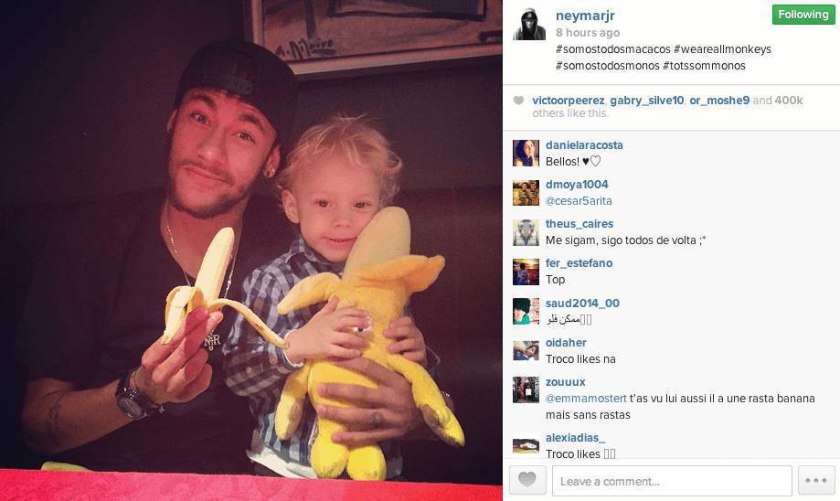 FOTO NEYMAR FERNANDIHNO BEBETO JULIO BAPTISTA – Tutti con Dani Alves. Dopo il brutto gesto dei tifosi del Villareal che, durante la partita tra la propria squadra e il Barcellona, hanno lanciato banane su Dani Alves, il modo del calcio si è schierato tutto dalla parte del brasiliano. Tanti i messaggi di sostengo per l’esterno blaugrana, vittima dei soliti “imbecilli” per il colore della sua pelle. E così, su Twitter, è partita una corsa di solidarietà nei suoi confronti. Oltre ai tanti post in suo favore, tanti campioni brasiliani hanno pubblicato alcune loro foto mentre hanno delle banane in mano. Da Neymar e sua sorella fino a Fernandihno e Julio Baptista, tutti hanno preso una posizione.