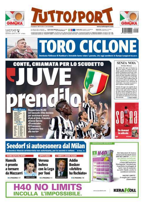 TUTTOSPORT JUVENTUS – La Juventus oggi giocherà contro il Sassuolo e cercherà di riportarsi a più otto dalla Roma.