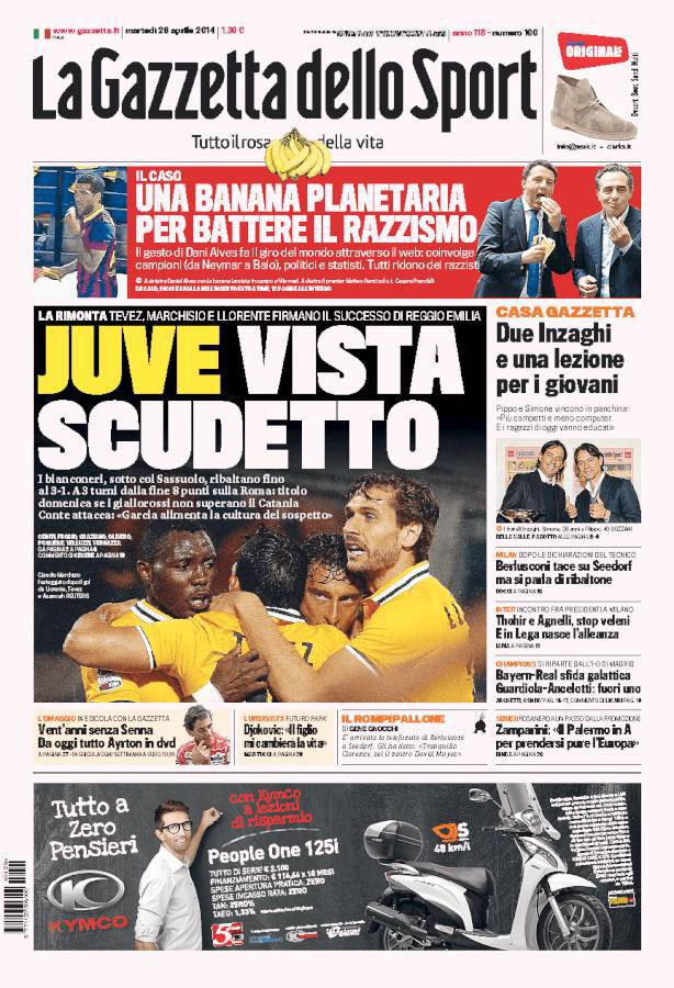 GAZZETTA SCUDETTO – La Juventus vince a Sassuolo e si avvicina allo Scudetto, il terzo consecutivo.