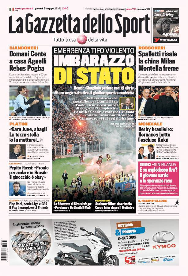 GAZZETTA STATO ULTRAS – La Gazzetta dello Sport continua l’inchiesta sulla situazione degli ultras parlando dell’imbarazzo dello Stato.