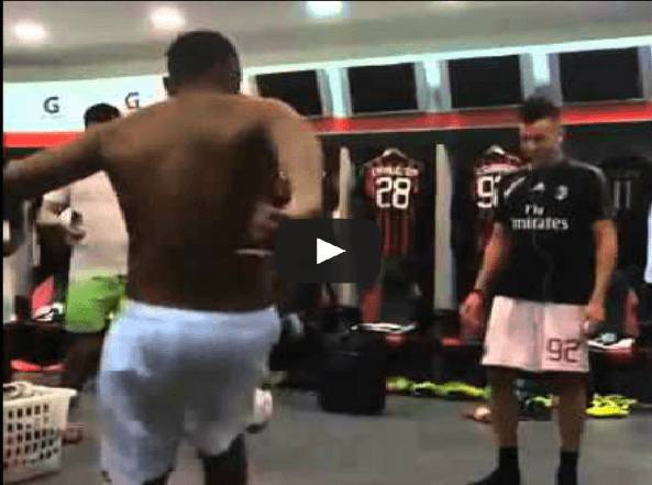 VIDEO ROBINHO EL SHAARAWY – Show di Robinho e Stephan El Shaarawy nello spogliatoio del Milan al termine del derby vinto dai rossoneri contro i cugini dell’Inter. L’attaccante brasiliano e il Faraone, tornato finalmente a far parte del gruppo dopo un lungo infortunio che ha condizionato tutta la sua stagione, si divertono palleggiando in modo fantastico sotto gli occhi divertiti dei compagni di squadra. I due rossoneri sfoggiano così tutta la loro classe e il loro talento dando vita ad uno spettacolo senza precedenti.