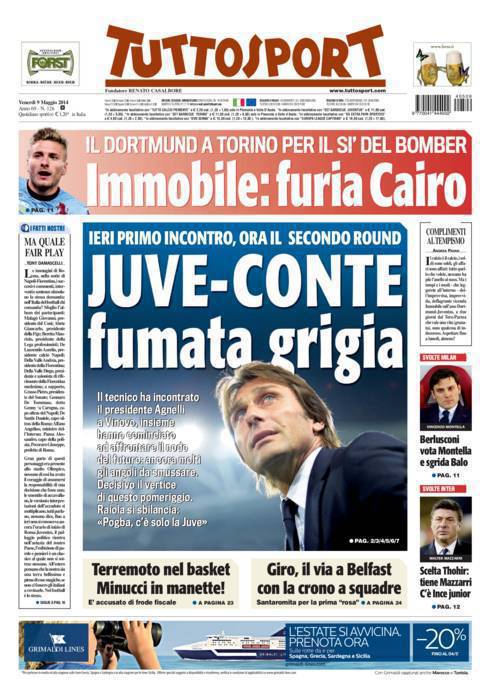 TUTTOSPORT CONTE – Primo incontro tra Conte e la Juventus finito con una fumata grigia.