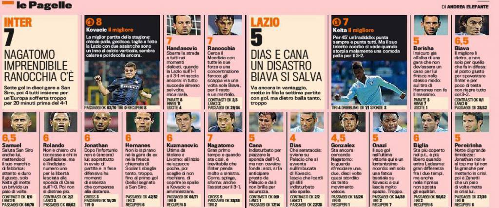 FANTACALCIO INTER LAZIO PAGELLE KOVACIC ZANETTI – E’ stata una sfida piena di emozioni quella giocata ieri sera al Giuseppe Meazza di Milano: Inter e Lazio, si sono affrontate a viso aperto, dando vita ad uno spettacolo davvero interessante. 4-1 il risultato finale, sebbene tutti gli occhi fossero puntati sul capitano nerazzurro Javier Zanetti, all’ultima gara casalinga della sua straordinaria carriera. Un 7 in pagella per lui, in seguito ad una gara maestosa, sebbene il vero man of the match risulti essere Mateo Kovacic, illuminante nelle sue straordinarie giocate. Tutto ciò nelle pagelle della Gazzetta dello Sport