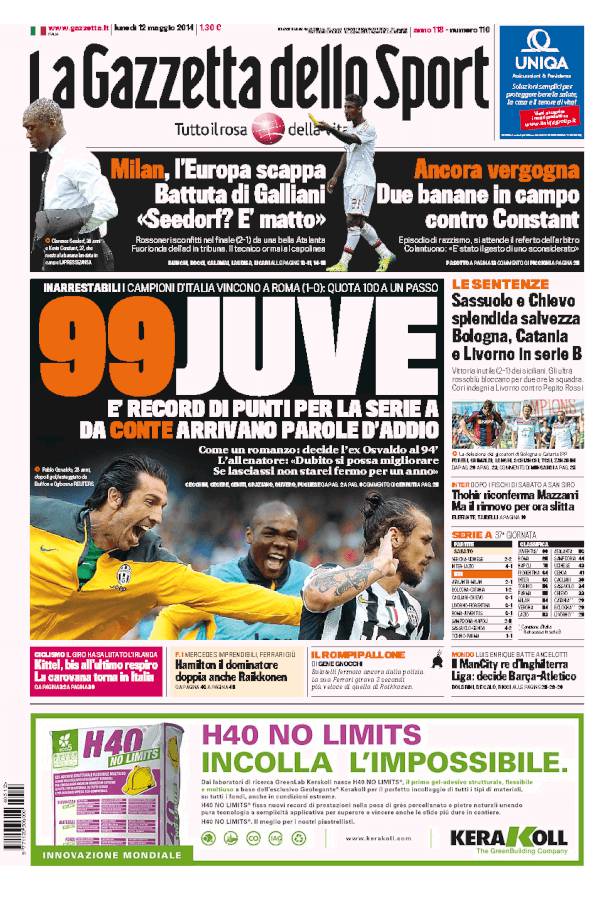 GAZZETTA JUVENTUS – Un gol di Osvaldo permette alla Juventus di battere la Roma all’Olimpico e stabilire un nuovo record di punti.