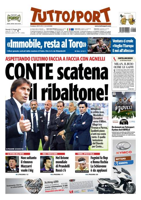 TUTTOSPORT CONTE – Antonio Conte potrebbe lasciare la Juventus e scatenare il ribaltone degli allenatori.