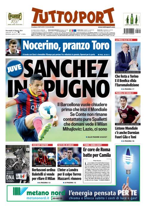 TUTTOSPORT SANCHEZ – Tuttosport è convinto che la Juventus abbia in pugno Alexis Sanchez del Barcellona.