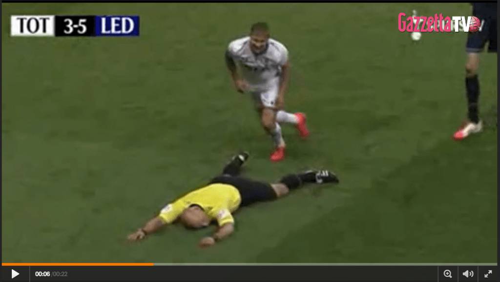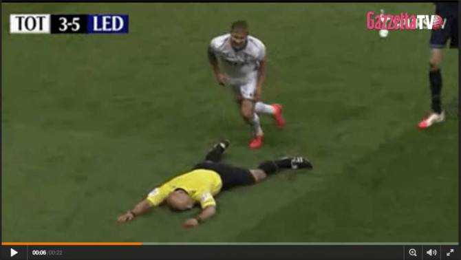 VIDEO WEBB ARBITRO- Howard Webb è sicuramente uno dei migliori arbitri in circolazione, un vero professionista. Ma a quanto pare è anche un grandissimo attore ed amante del divertimento. L’arbitro si è infatti reso protagonista di una divertente scenetta in campo, al White Hart Lane, in occasione dell’addio al calcio di Ledley King, difensore del Tottenham. Webb ruba palla a centrocampo e abbozza un dribbling (da dire che il tocco di palla non sembra neanche male) ma viene subito steso da un calciatore. Mentre gli avversari suggeriscono il cartellino per sanzionare l’intervento, l’arbitro si alza puntando il giocatore autore del fallo e, raggiuntolo, lo spintona. Il pubblico se la ride e con lui anche i commentatori ai microfoni.