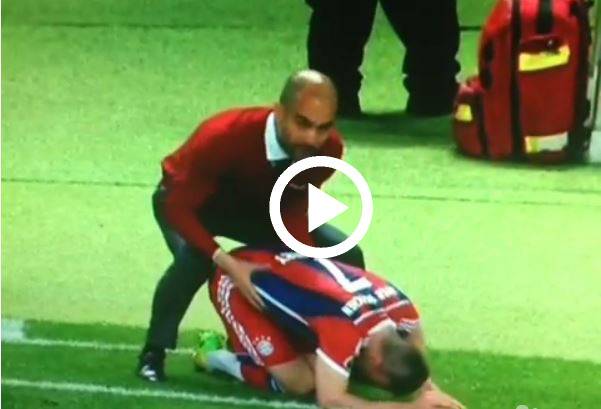 VIDEO BAYERN MONACO GUARDIOLA RIBERY – Difficile trovare le parole giuste per commentare il video che oggi vi proponiamo. Durante la finale di Coppa di Germania, DFB Pokal, disputata ieri sera tra Bayern Monaco e Borussia Dortmund, Pep Guardiola, tecnico dei bavaresi, si è travestito da massaggiatore per dare una mano a Franck Ribery, momentaneamente accasciato al suolo. La posizione però di Guardiola ed il movimento con le mani compiuto dall’allenatore, hanno lasciato spazio a grande ironia sul web ed evidentissimi doppi sensi. Vi presentiamo il filmato:
