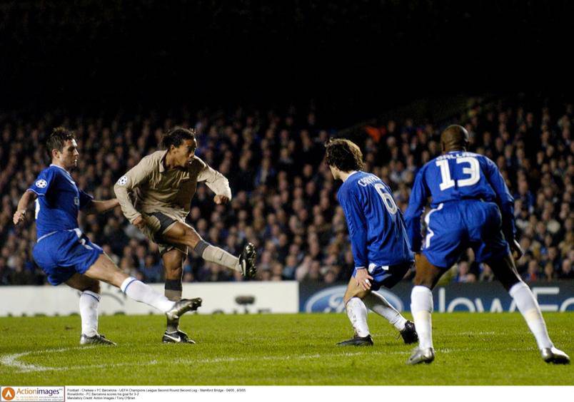 Il gol di Ronaldinho, per il Barcelona, contro il Chelsea nel marzo del 2005