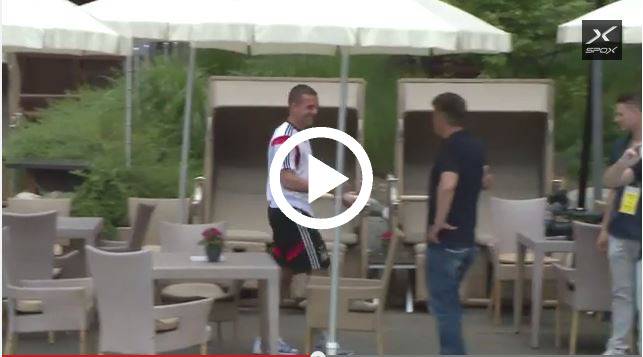 VIDEO PODOLSKI – E’ sempre un personaggio esilarante Lukas Podolski, attaccante della nazionale tedesca e dell’Arsenal che, durante la sua carriera, è sempre stato riconosciuto come un vero e proprio uomo spogliatoio. Durante il ritiro della nazionale tedesca, Poldi ha deciso di combinarne una delle sue: al termine dell’allenamento, ha deciso di prendere in braccio un giornalista e buttarlo in piscina, regalandogli così un bagno rinfrescante. Tra le risate degli inservienti del resort dove risiede la nazionale tedesca, dei colleghi giornalisti e dei compagni di Podolski, il povero reporter è uscito fradicio dalla piscina come testimonia il video qui in basso: