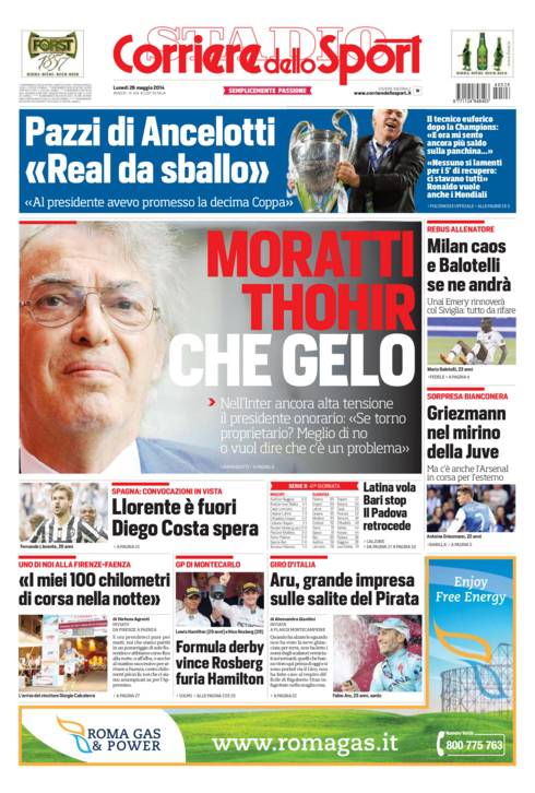 CORRIERE MORATTI – E’ gelo tra Massimo Moratti, ex presidente dell’Inter ed Erick Thohir, attuale proprietario nerazzurro.