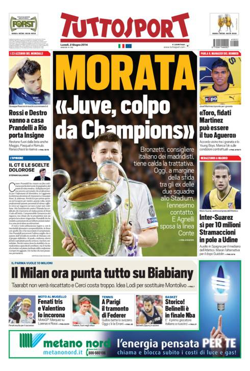 TUTTOSPORT MORATA – Su Tuttosport parla Bronzetti che elogia la Juventus per il colpo Morata che sembra davvero a un passo.