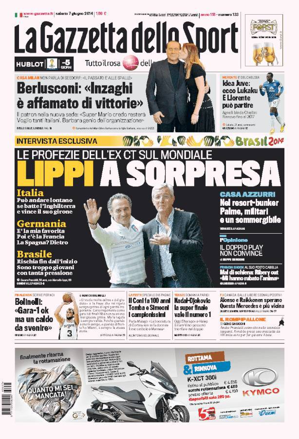 GAZZETTA LIPPI – Sulla Gazzetta dello Sport si parla delle profezie di Marcello Lippi riguardo al Mondiale brasiliano.